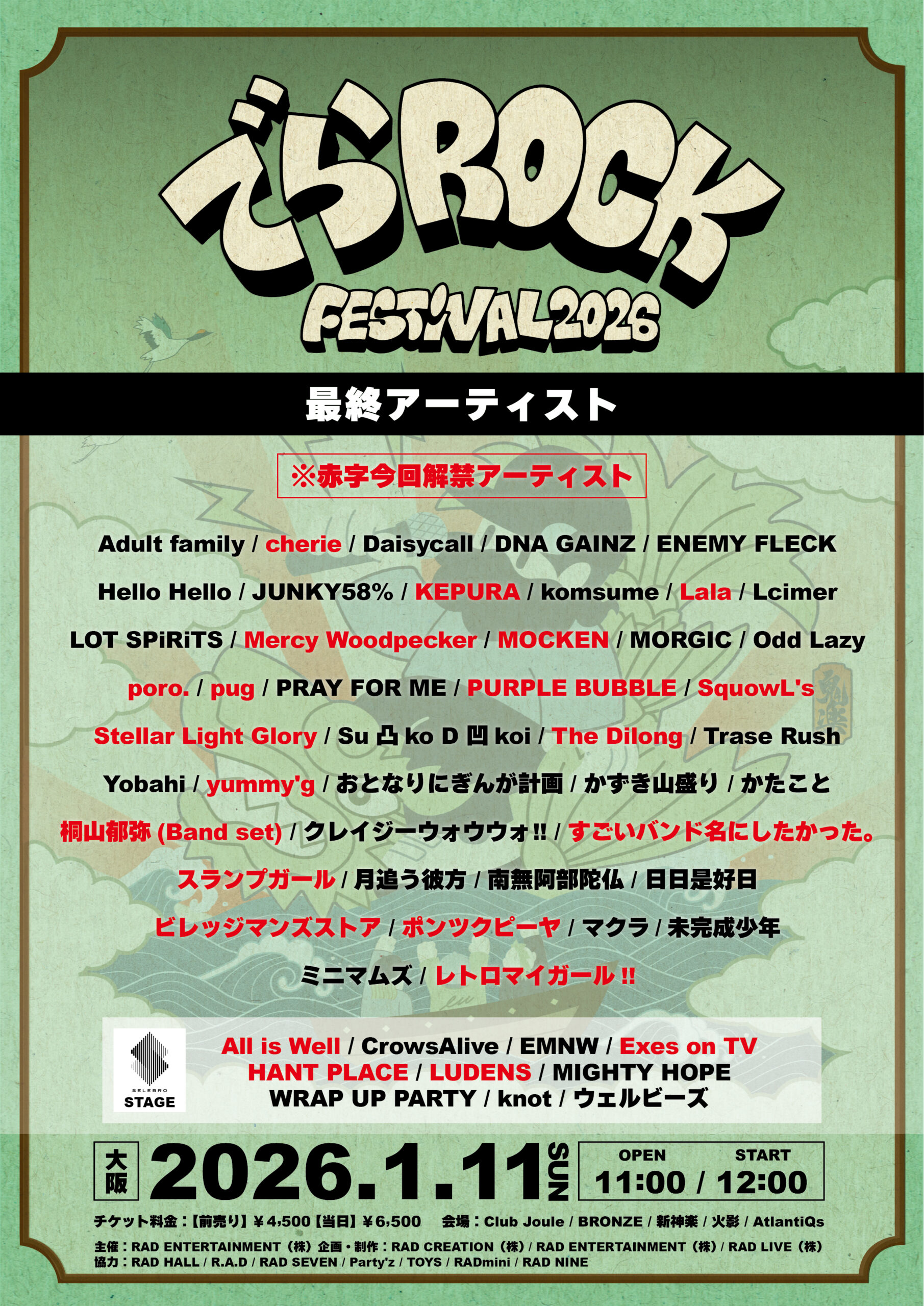 「RAD CREATION & RAD ENTERTAINMENT presents でらロックフェスティバル OSAKA 2026」